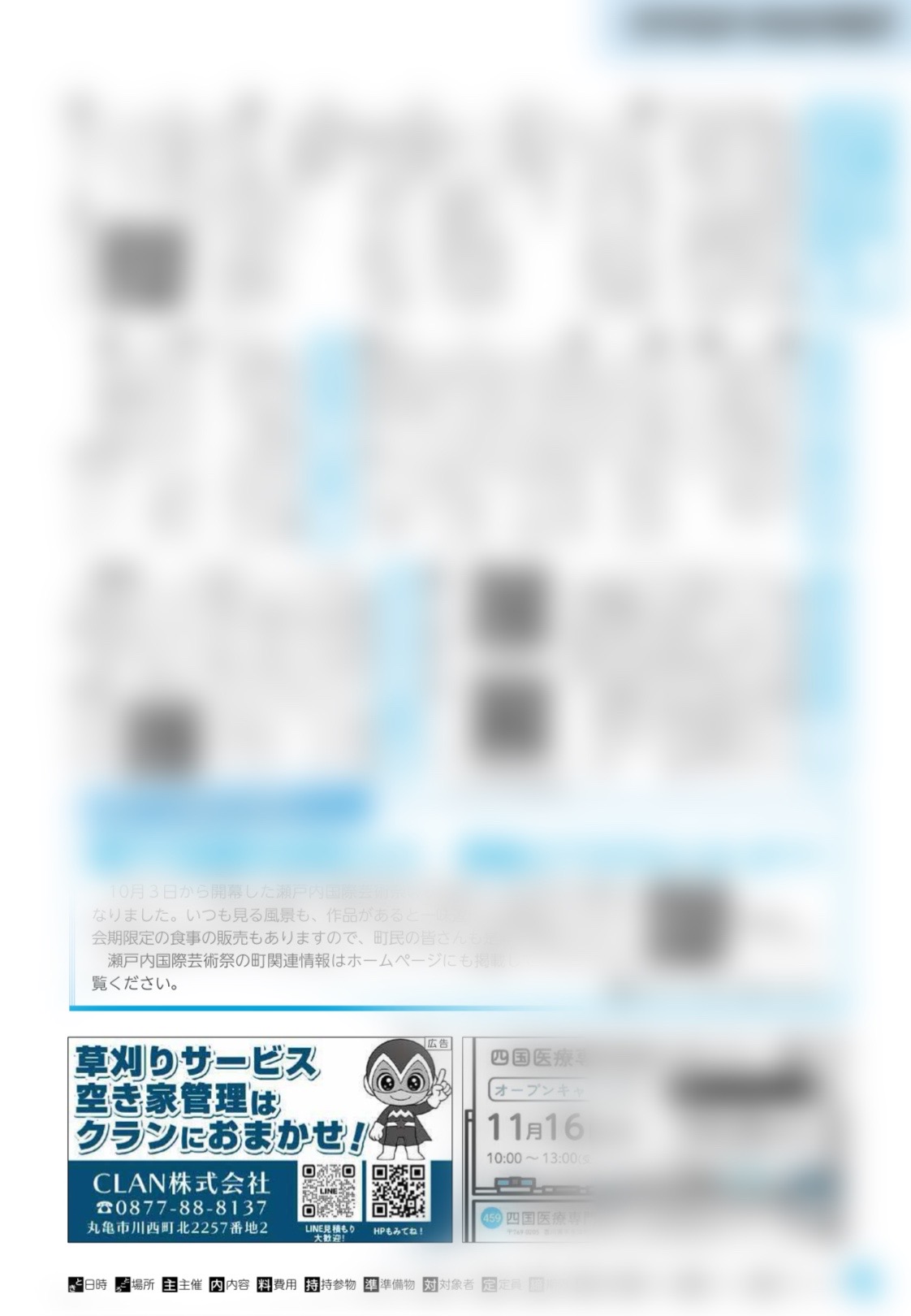 2025.11.10お知らせ【宇多津町広報】に広告掲載しました‼️ 宇多津町の広報に広告を掲載しました😊宇多津町は丸亀市からも近く 定期的にご依頼くださる方が多いです♪ いつもご依頼、ありがとうございます🙇♀️感謝の気持ちと、もっとたくさんの宇多津町の皆様に クラン草刈りサービスを知って頂けたら と思っています✨宇多津町の広報ページはこちらもちろんお電話でのお問い合わせも大歓迎です! お電話でのお問い合わせはこちら ▶︎▶︎▶︎ 投稿ナビゲーション