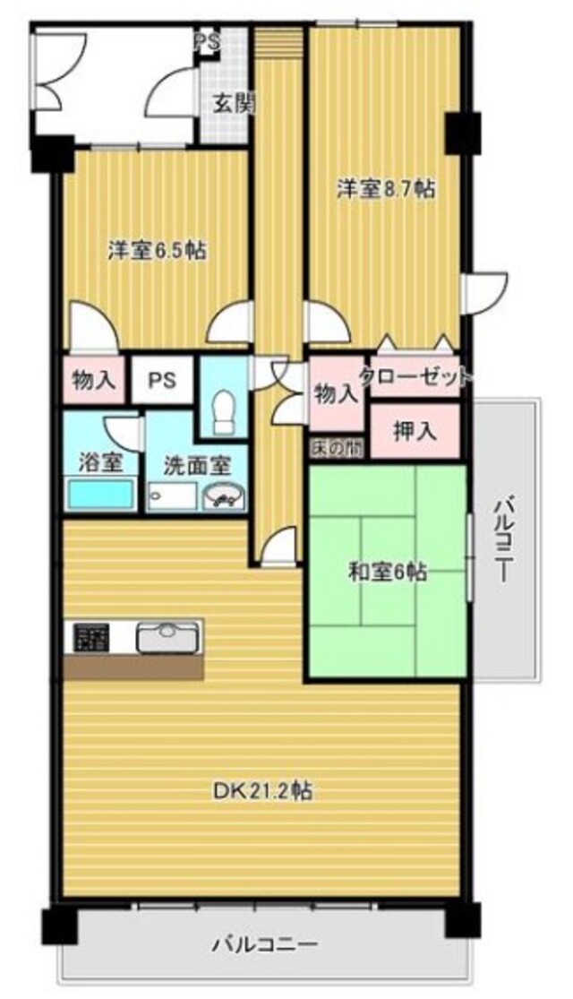 | 間取り | 3LDK (和 6 洋 8.7・6 LDK 21.1) |
