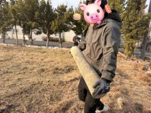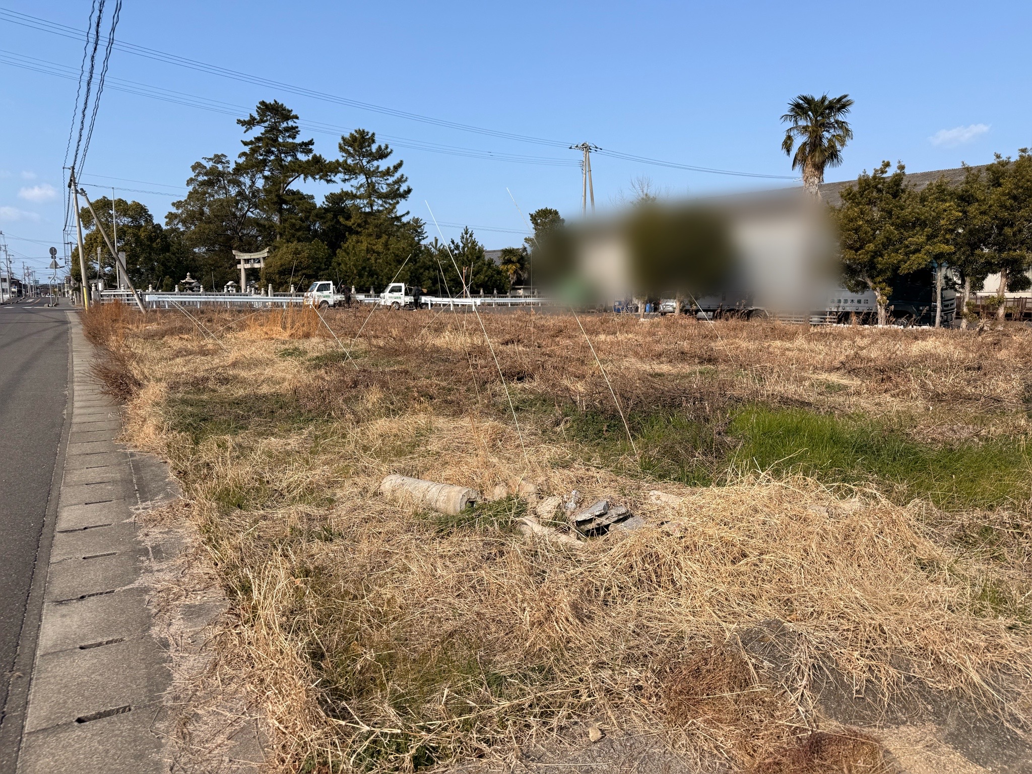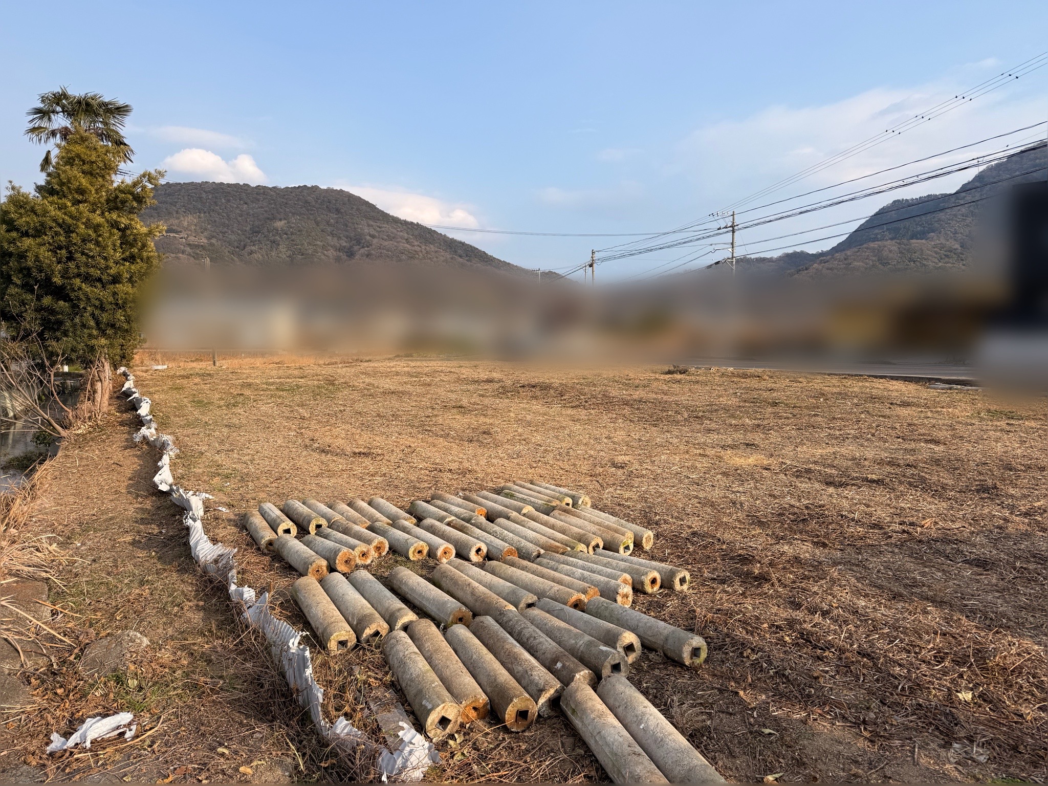 ただ、夏にまた草が伸びてきた時に作業しづらいし危ないなって思ってとりあえず動かせそうな物は動かそう!って事で、当社1️⃣??力持ちがこんな寒い日に汗だくになってコンクリートを運び、他のスタッフが除草作業をしました‼️